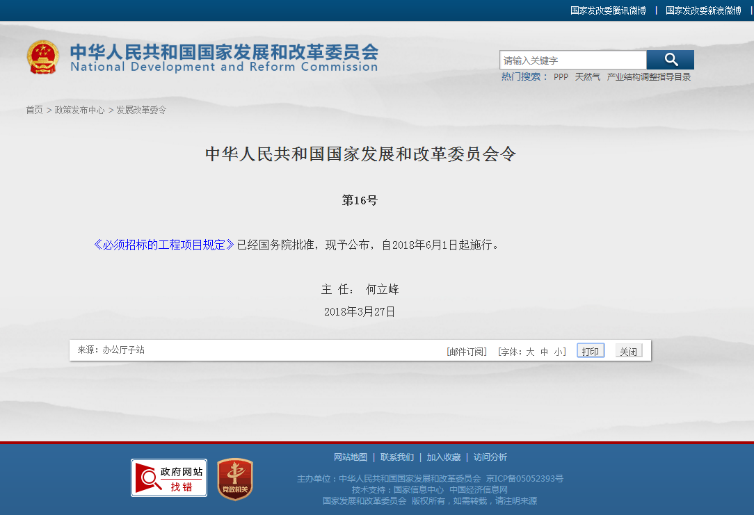 《必須招標的工程項目規(guī)定》已經(jīng)國務(wù)院批準,現(xiàn)予公布,自2018年6月1日起施行。